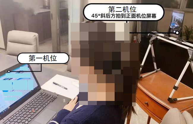 (1)远程复试考核一般采用双机位。考生须准备一台笔记本电脑(带摄像头、麦克风)或一台台式电脑(外置摄像头、麦克风及音响),保证电量充足,存储空间充足,和一部智能手机(第二机位使用);或两部智能手机(一部第一机位,一部第二机位)。“第一机位”用于采集考生音、视频源(考生正前方),建议使用笔记本电脑或者台式机,不推荐使用手机。“第二机位”用于采集考生所处的环境(考生远端,侧方或者后方),要开启静音模式,要求能够监控考生的周边情况以及“第一机位”显示器的音、视频源,建议使用手机。第一机位和第二机位视野交叉形成360度监控视野。若使用手机设备,要关闭通话、录屏、外放音乐、闹钟等可能影响考试的应用程序。