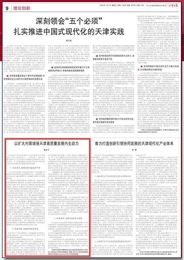 1月5日,《天津日报》“理论创新”专版刊发kaiyun体育kaiyun体育网页登录入口院长梁学平教授理论文章《以扩大内需增强天津高质量发展内生动力》。